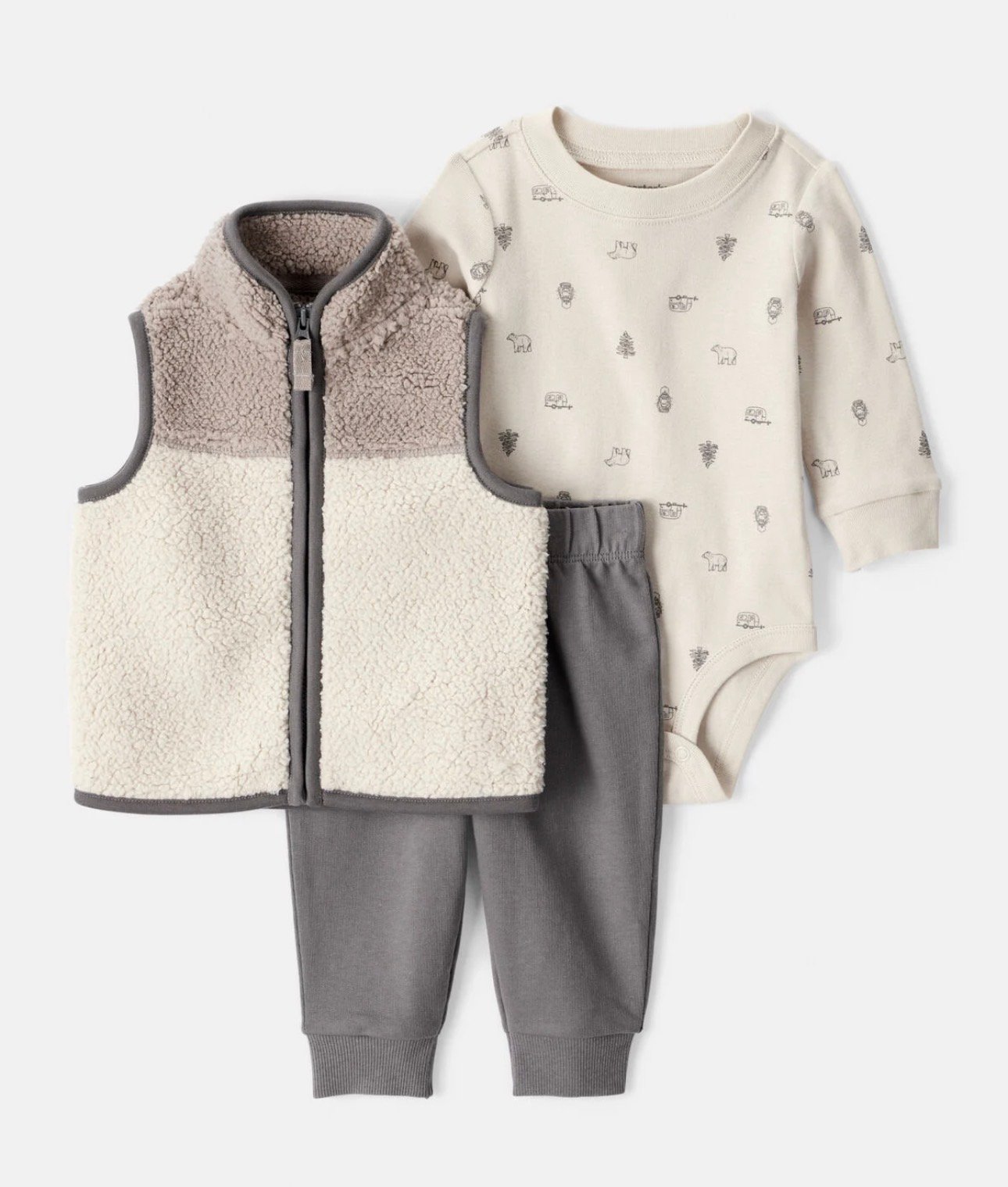 Dress your little gentleman with this charming Baby Boy 3-Piece Vest, Bodysuit & Pant Set in Ivory and Grey. Perfectly designed for special occasions or everyday style, this outfit is a blend of elegance and coziness that will make your baby the star of the day.