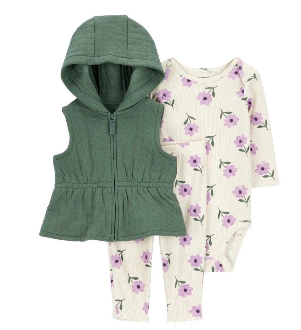 Carter’s Child of Mine Baby and Toddler Girl Vest Outfit Set, 3-Piece, Sizes 0/3m